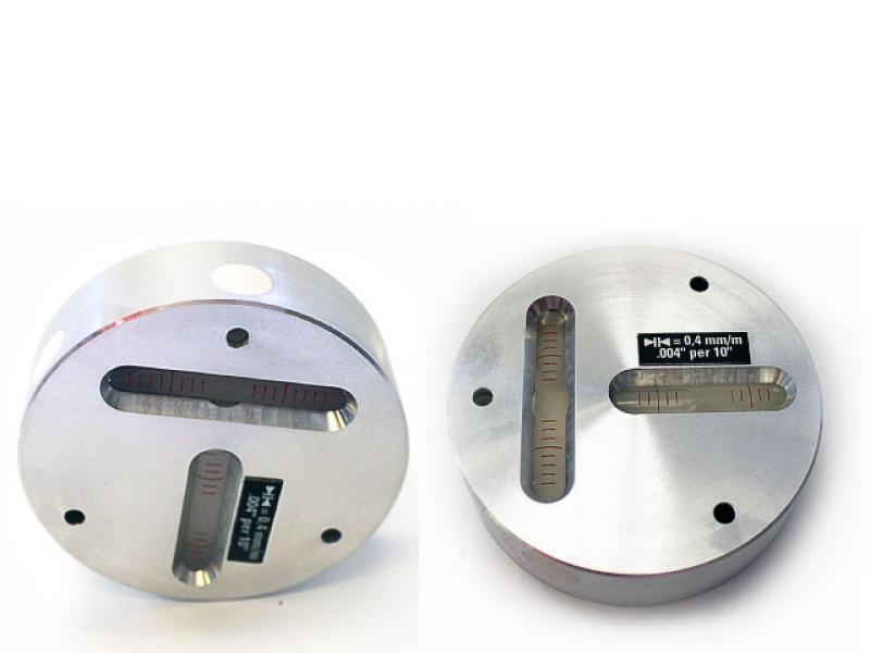3.420 krKorsvattenpass i runt kromhölje, korsvattenpass med två libellampullar, runt kromhölje med tre skruvhål ø4 mm, gradering 0,4 mm/m, mått ø80×23 mm